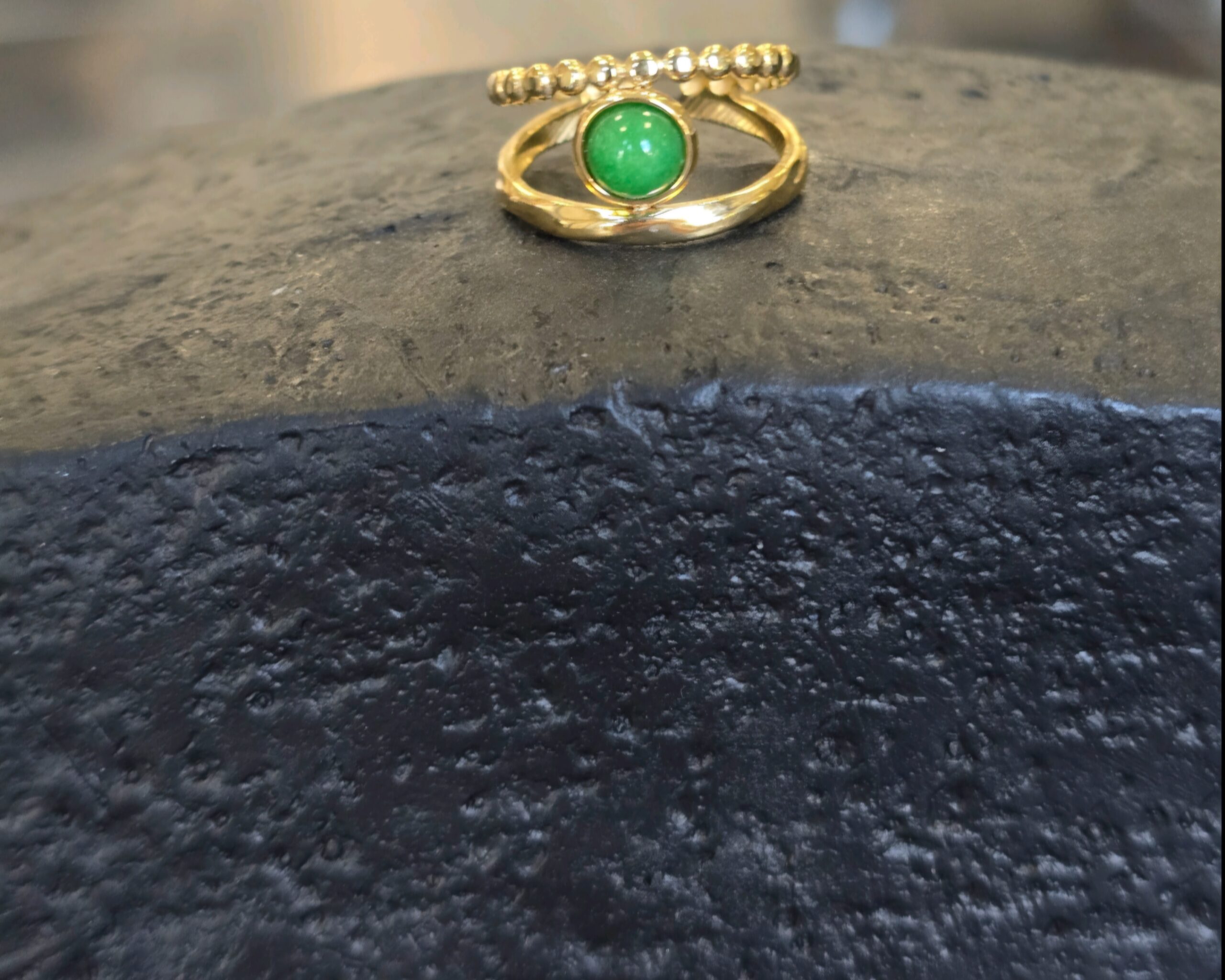 Δαχτυλιδι επιχρυσωμένο ανοξείδωτο ατσάλι,με πράσινη πέτρα. Υπόαλλεργικα