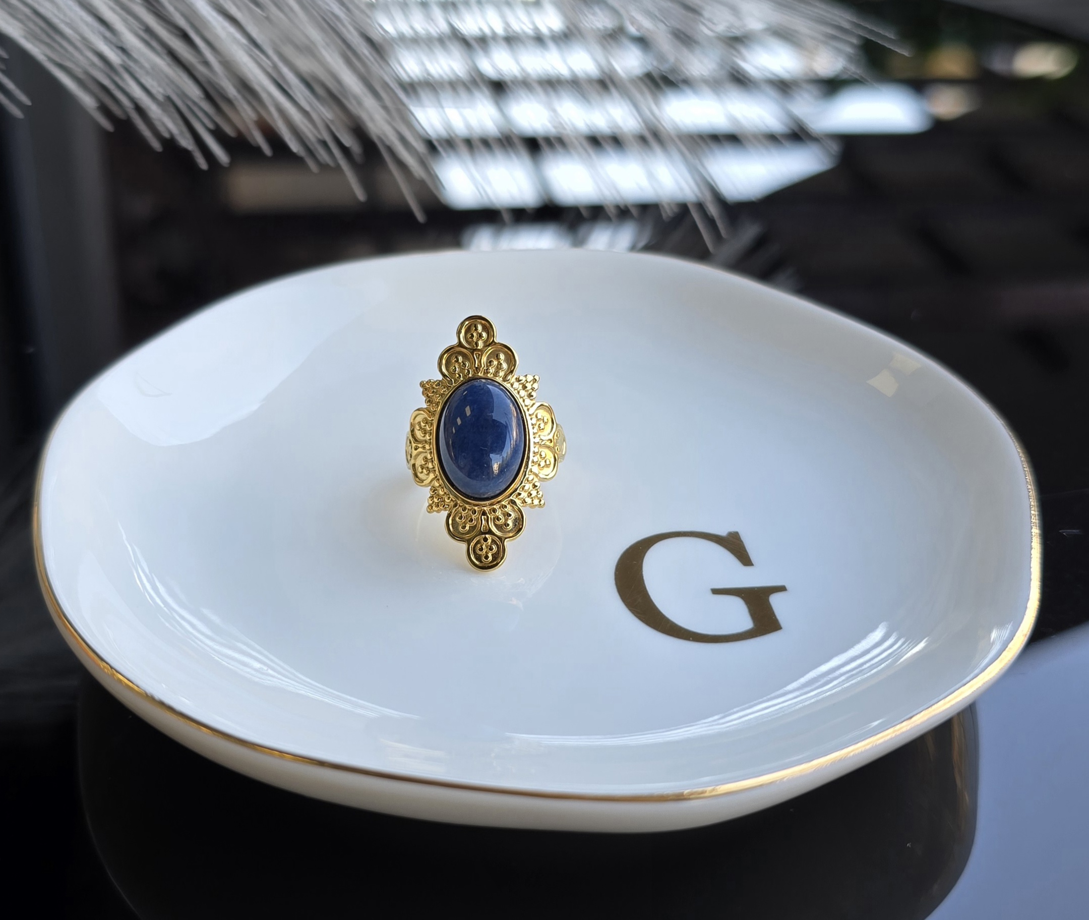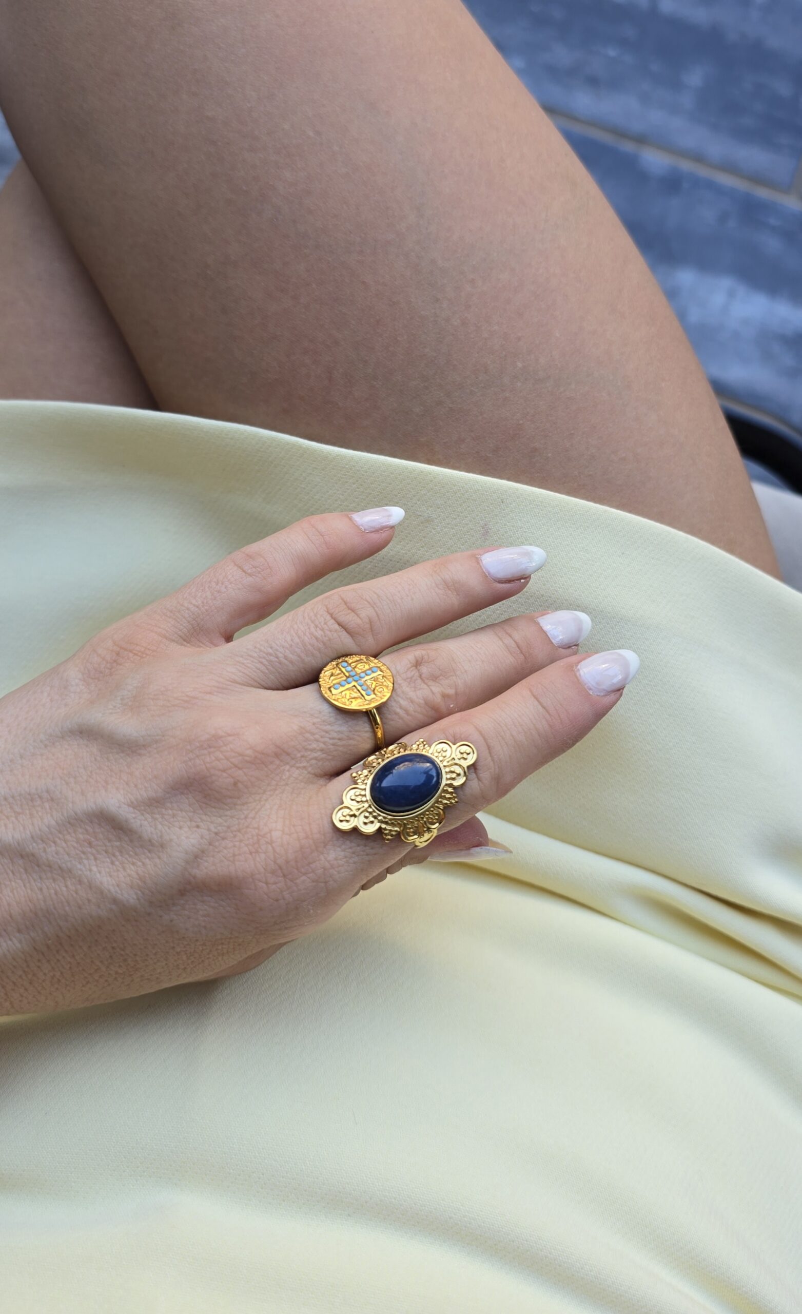 Δαχτυλιδι  από επιχρυσωμένο ανοξείδωτο ατσάλι με μπλε πέτρα. Με άνοιγμα που αυξομειωνεται. Υπόαλλεργικα