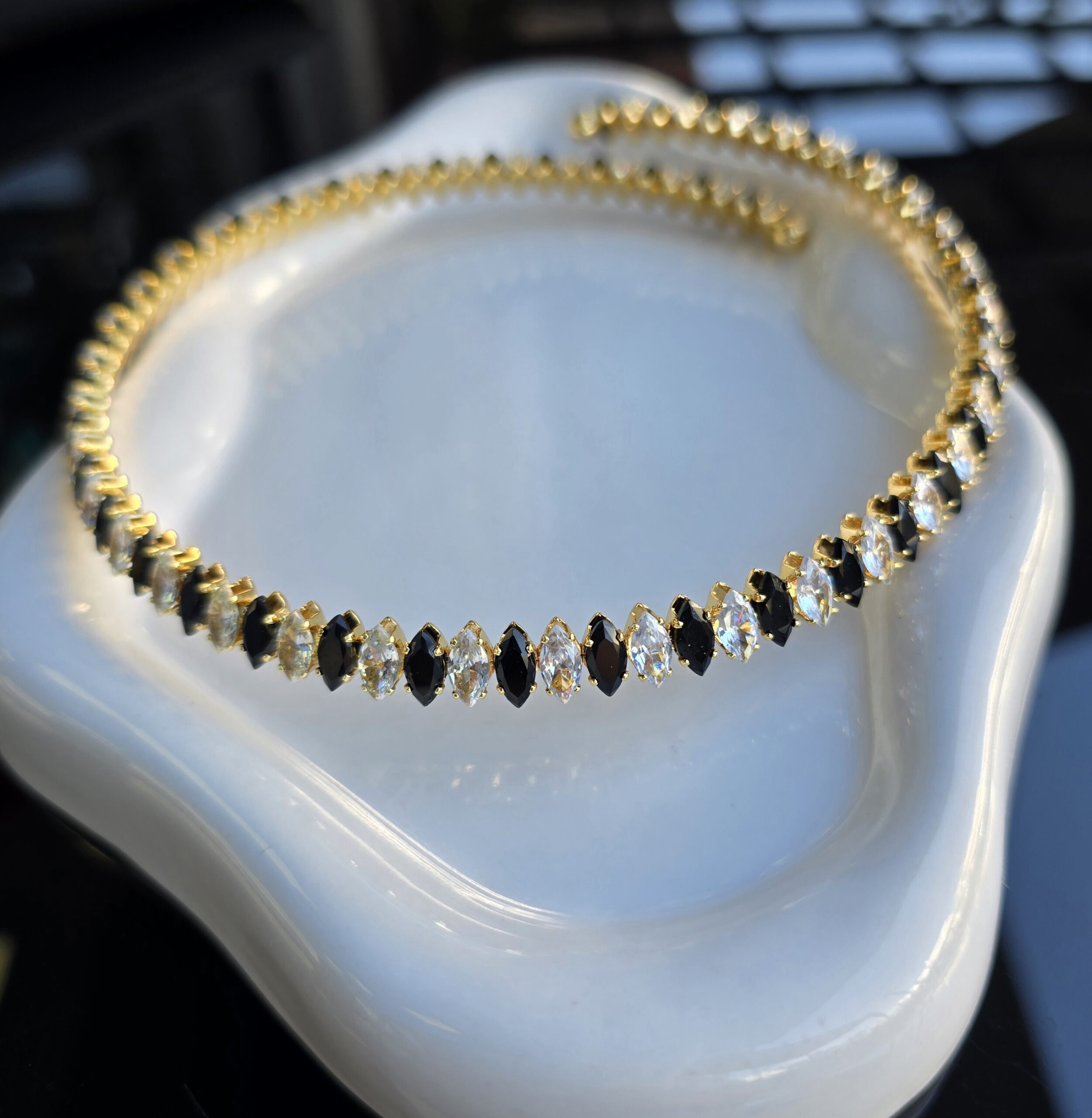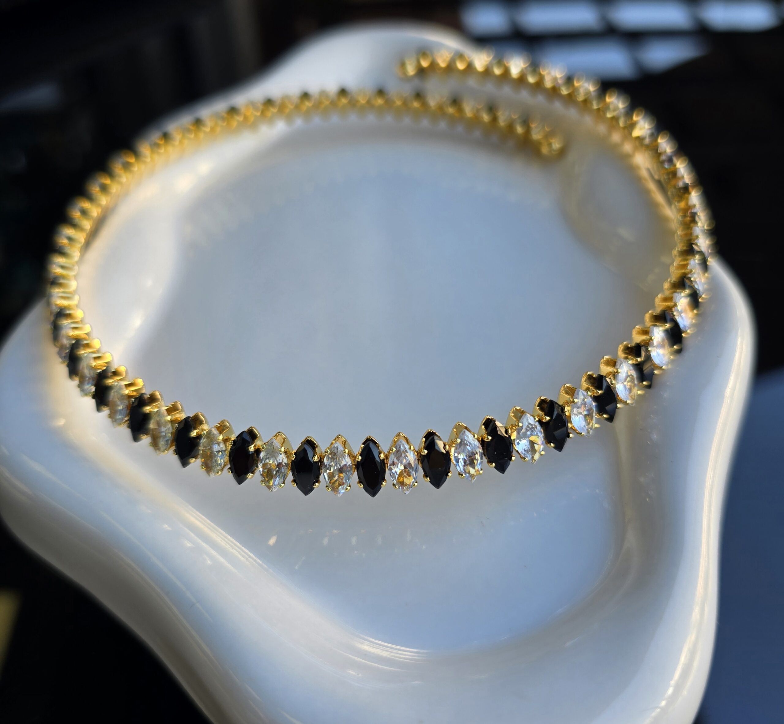 Κολιέ-τσοκερ επιχρυσωμένο 18Κ με πετρες ζιργκον. Υπόαλλεργικα.