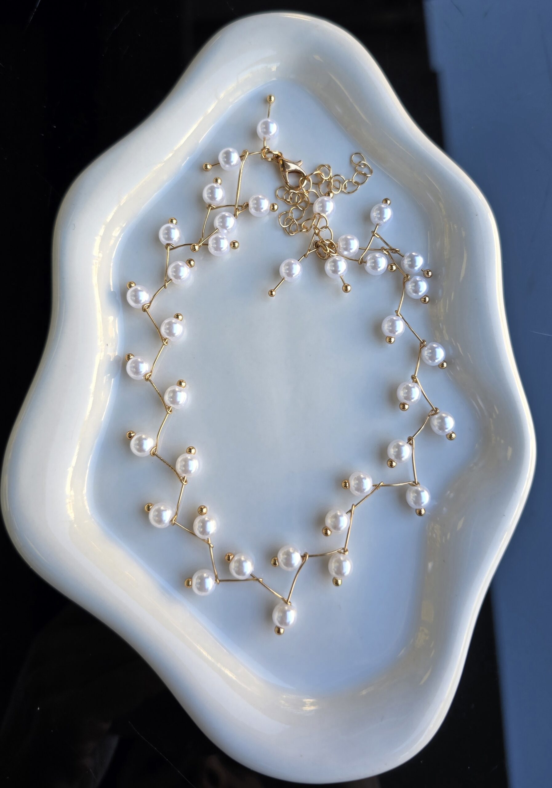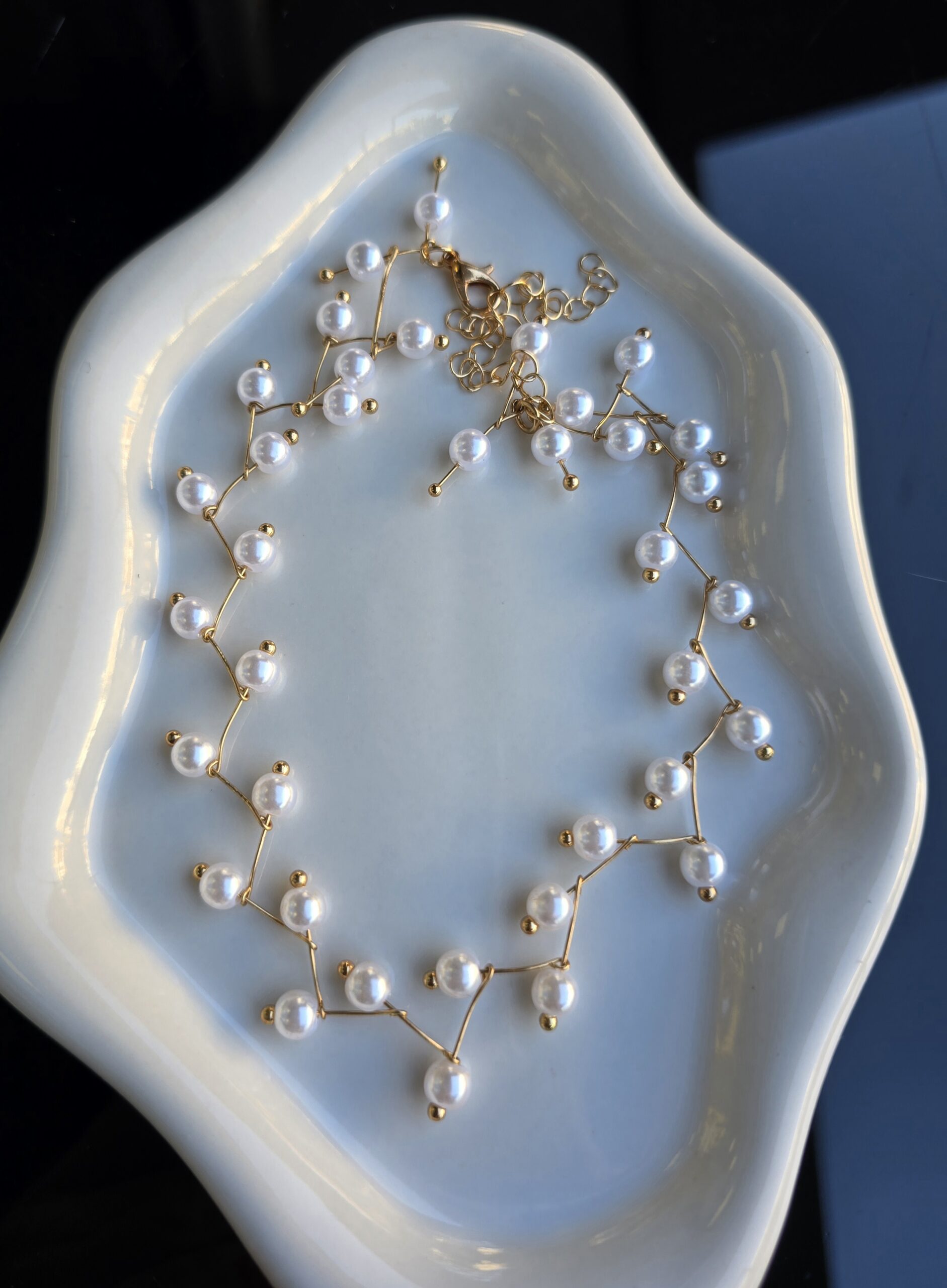 Κολιέ-τσοκερ σε λευκό-χρυσό χρώμα, απο μικρά μαργαριτάρια. Υπόαλλεργικα.