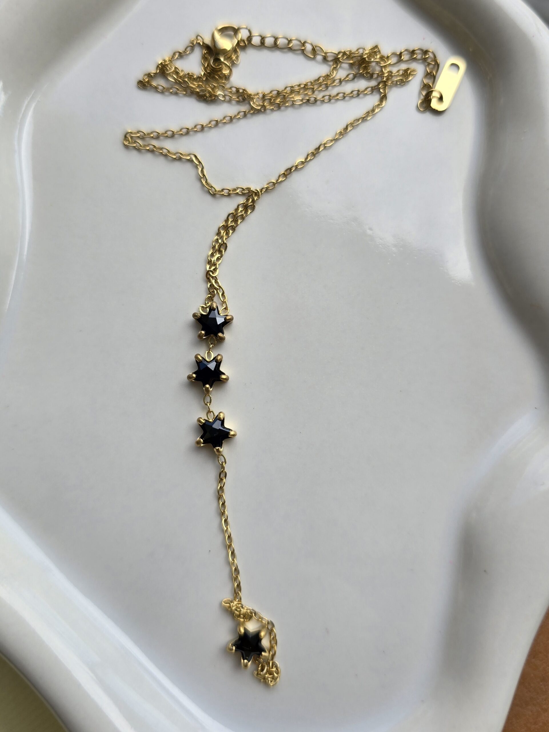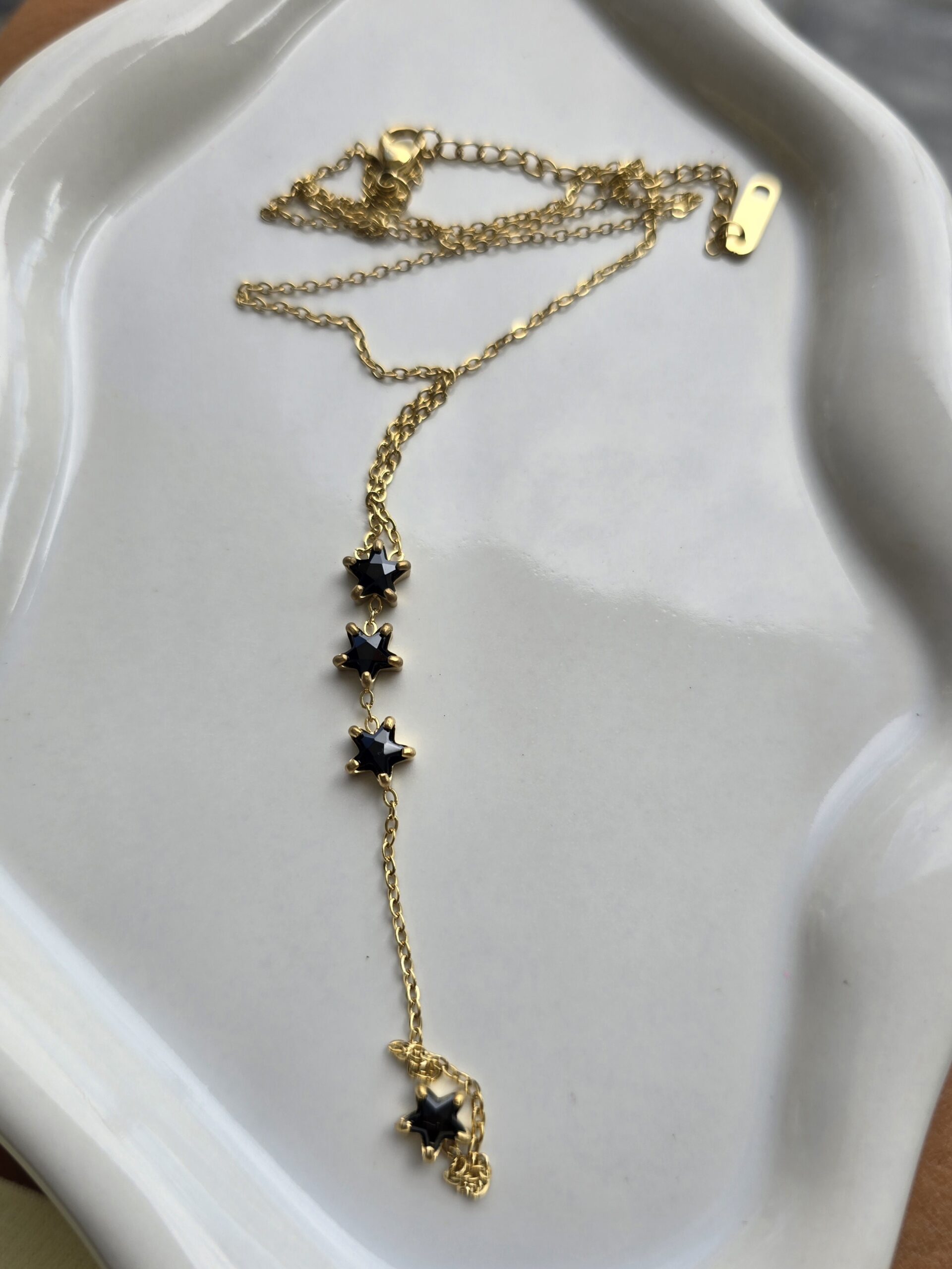 Κολιέ από ανοξείδωτο επιχρυσωμένο ατσάλι σε σχήμα αστέρι μαύρο χρώμα ζιργκον. Υπόαλλεργικα