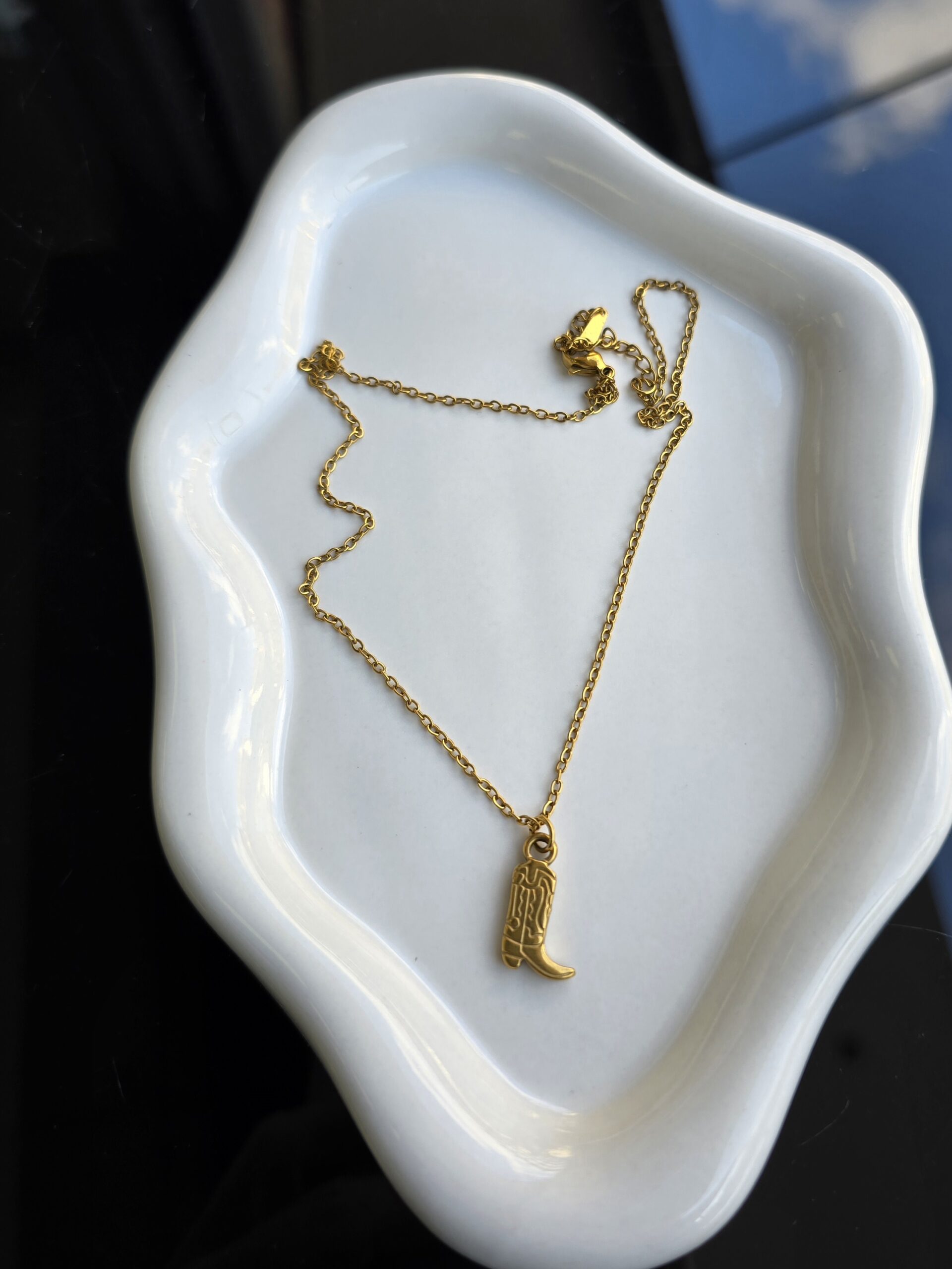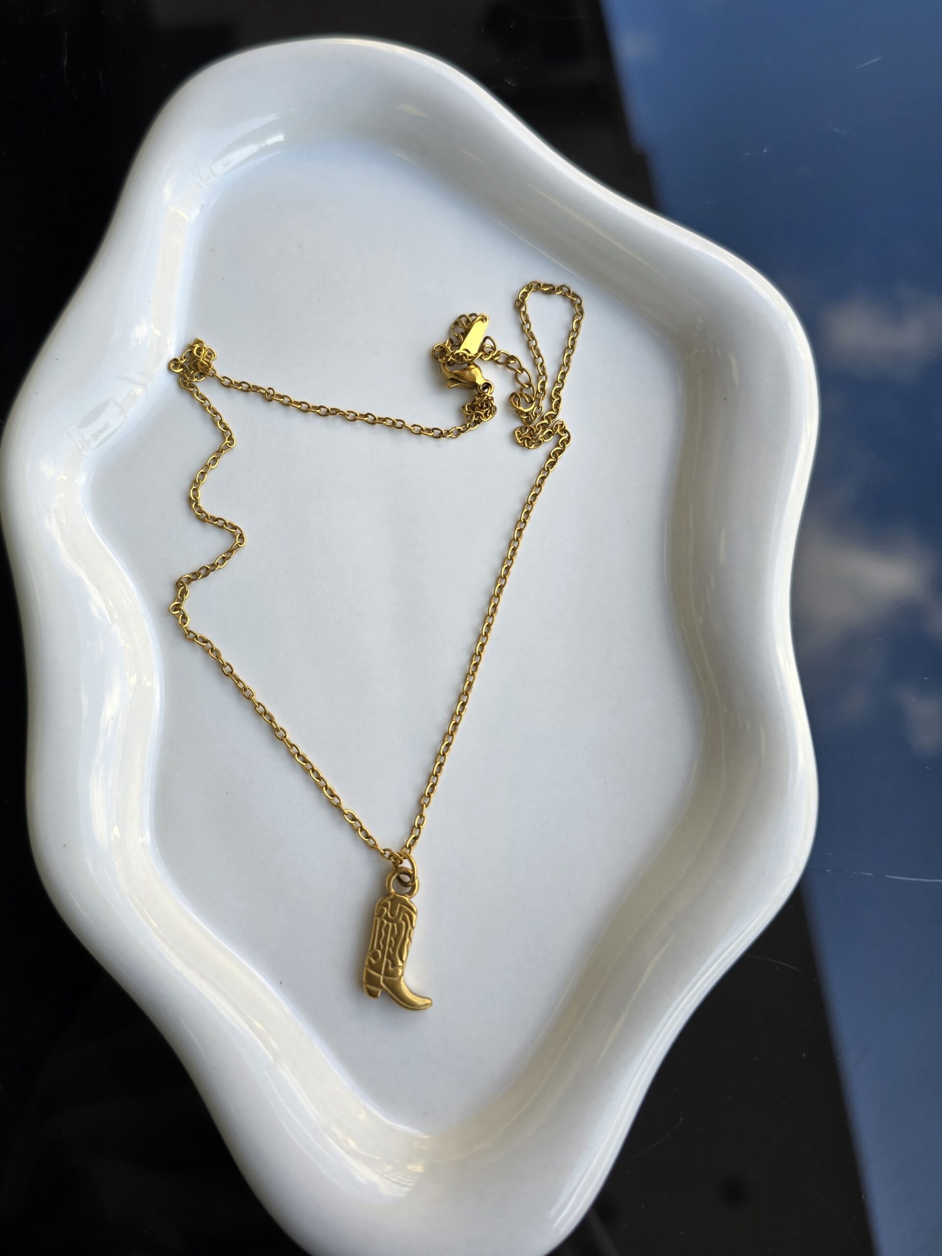 Κολιέ από ανοξείδωτο επιχρυσωμένο ατσάλι σε σχήμα μποτας. Υπόαλλεργικα δεν μαυρίζουν.