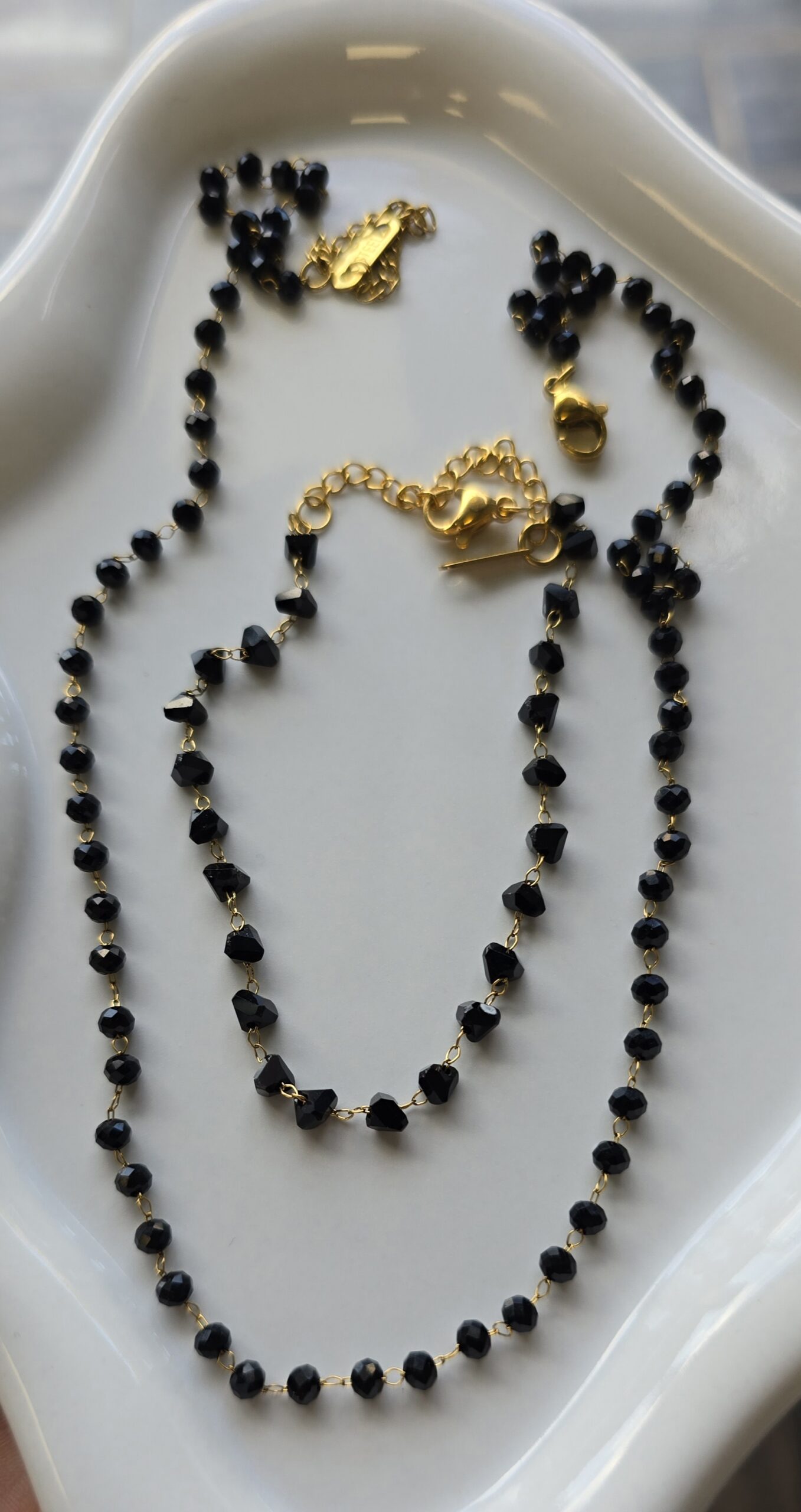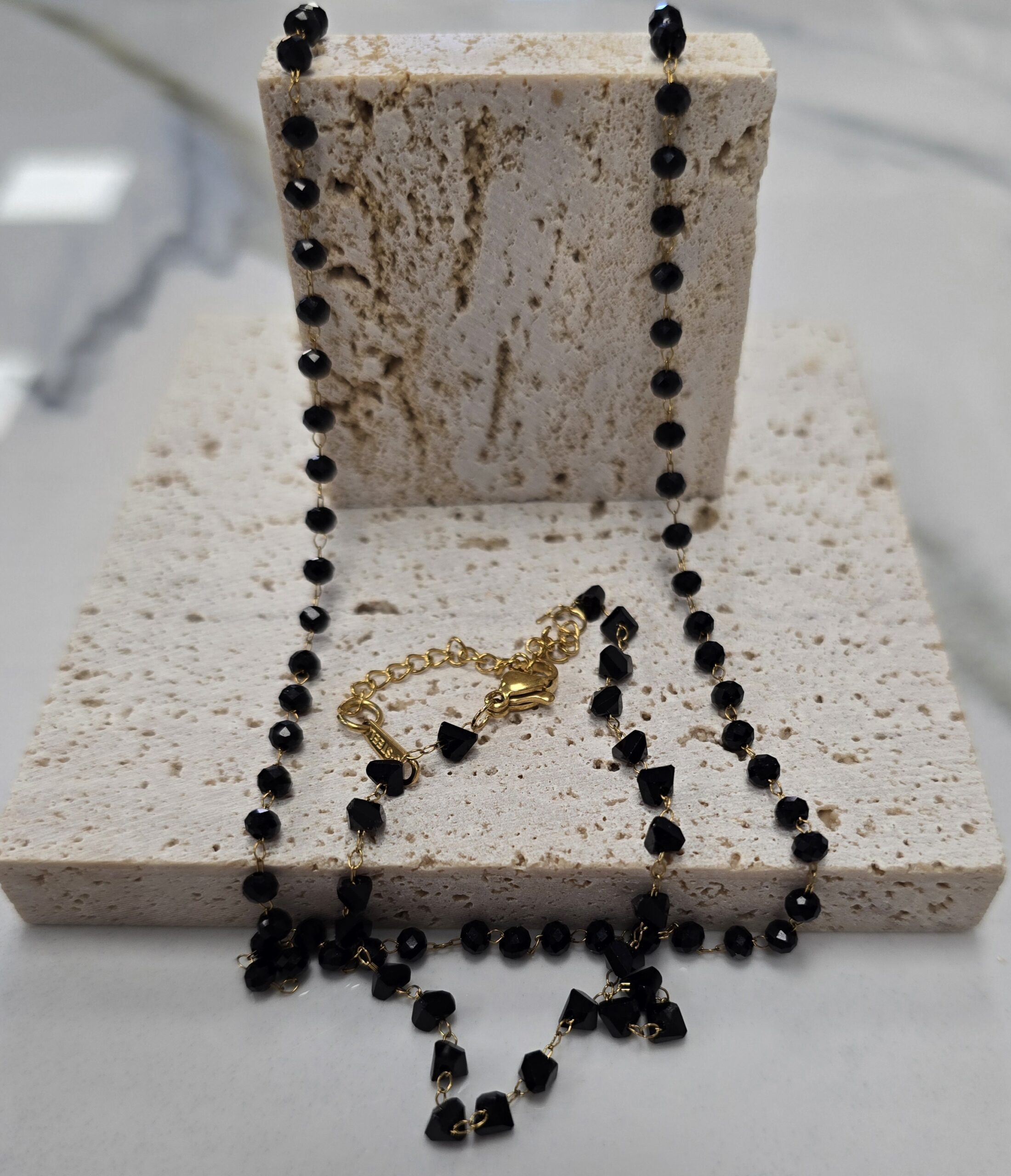 Σετ κολιε κ βραχιόλι από ανοξείδωτο ατσάλι επιχρυσωμένο,με μαύρες χαντρες .