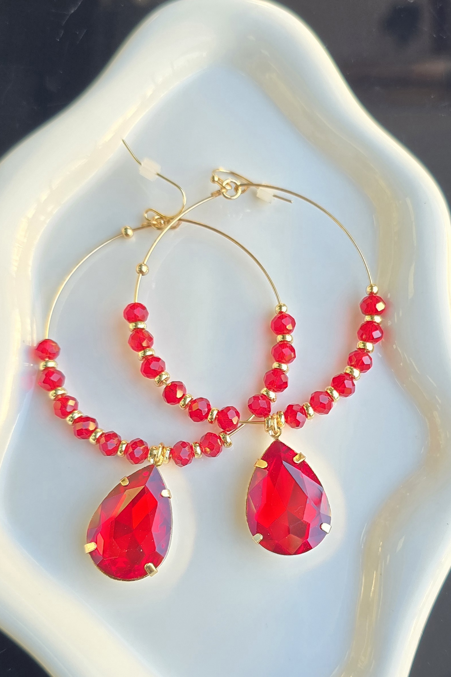 Σκουλαρίκια χειροποίητα απο κρύσταλλο σε σχήμα δάκρυ,χρώματος κόκκινο..