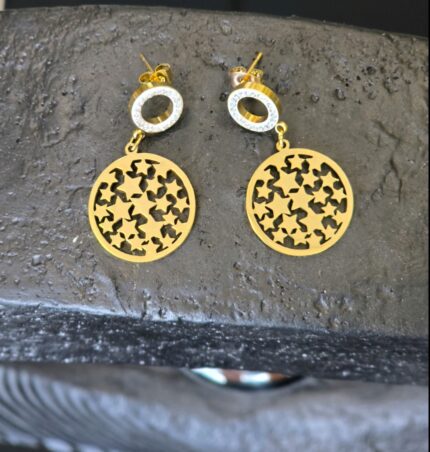 Σκουλαρίκια μαύρα  με στρας επιχρυσωμένο ανοξείδωτο  σε χρυσό χρώμα.