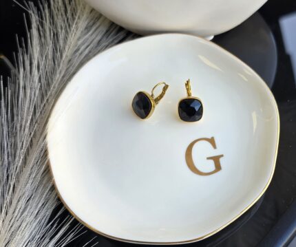 Σκουλαρίκια μαύρα με στρας επιχρυσωμένο ανοξείδωτο σε χρυσό χρώμα.