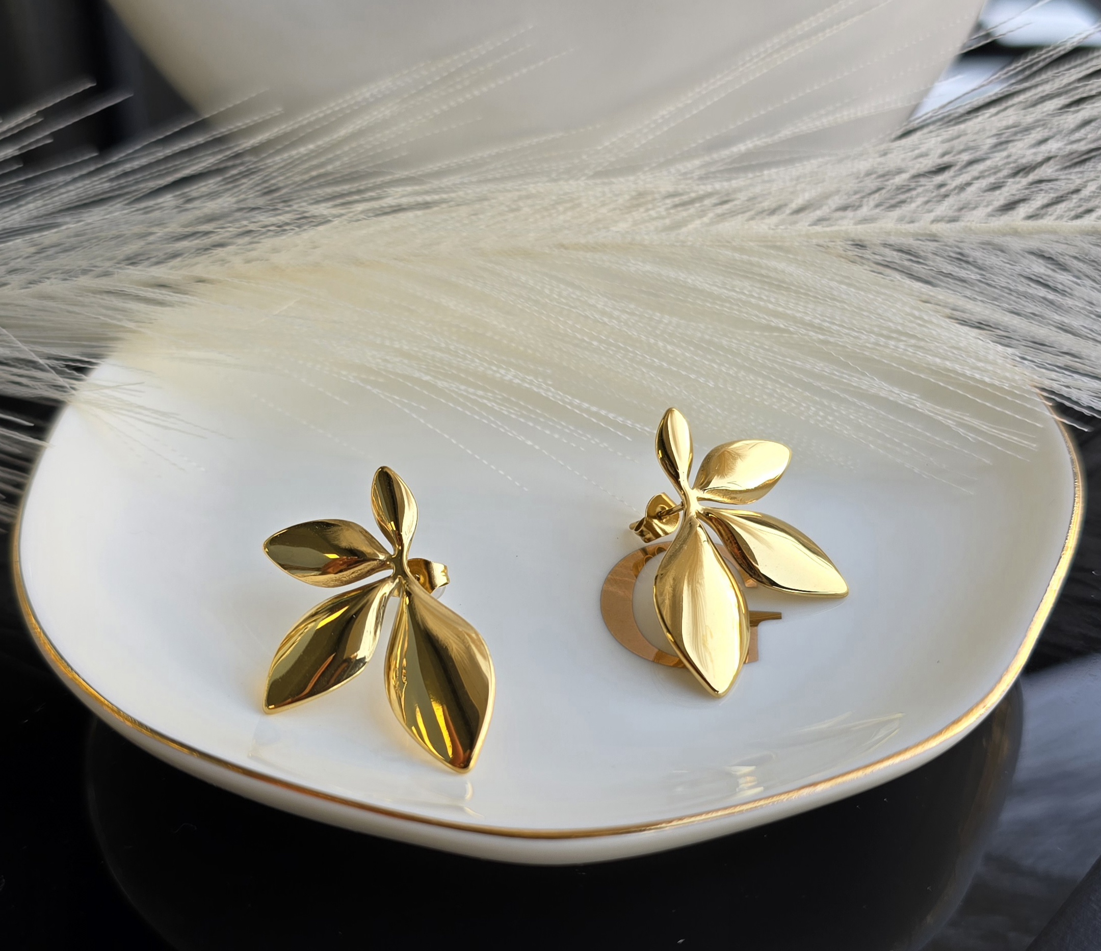 Σκουλαρίκια από ανοξείδωτο ατσάλι επιχρυσωμένο σε σχήμα λουλουδι
