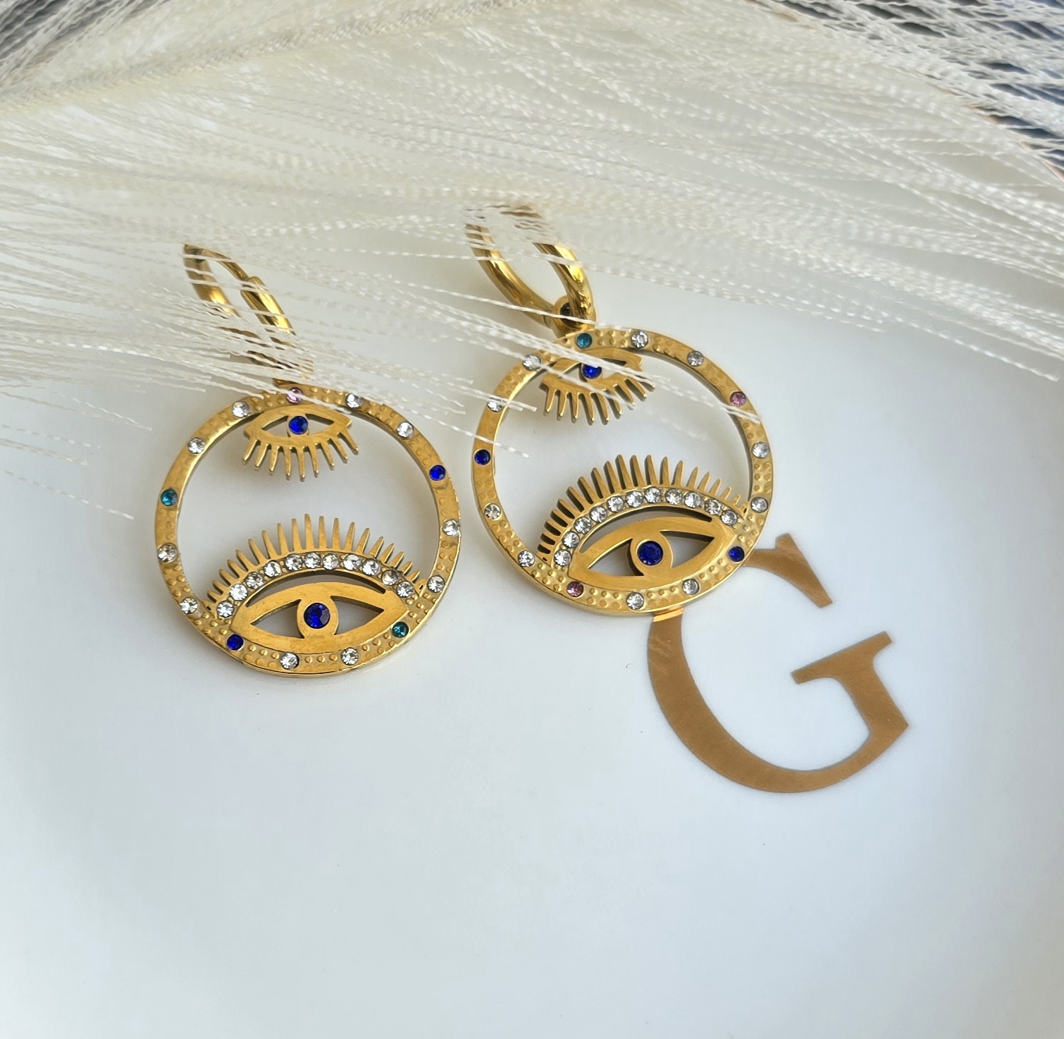Σκουλαρίκια από ανοξείδωτο ατσάλι επιχρυσωμένο σε σχήμα μάτι.