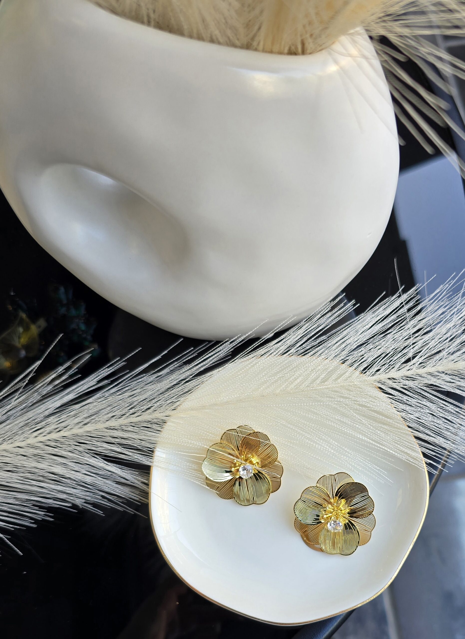 Σκουλαρίκια από ανοξείδωτο ατσάλι επιχρυσωμένο, σε σχήμα λουλουδι. Υπόαλλεργικα δεν μαυρίζουν.
