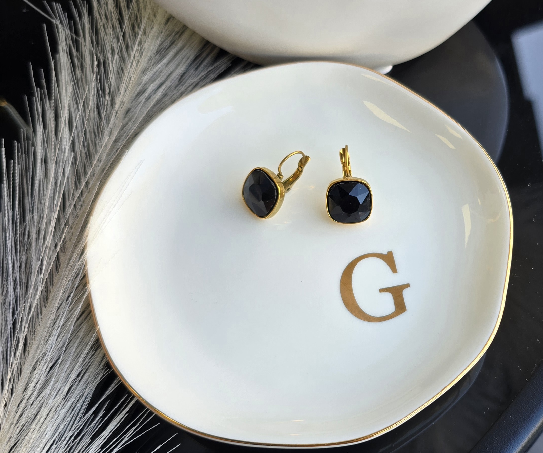 Σκουλαρίκια από ανοξείδωτο ατσάλι επιχρυσωμένο με πετρα σε μαύρο χρώμα. Υπόαλλεργικα.