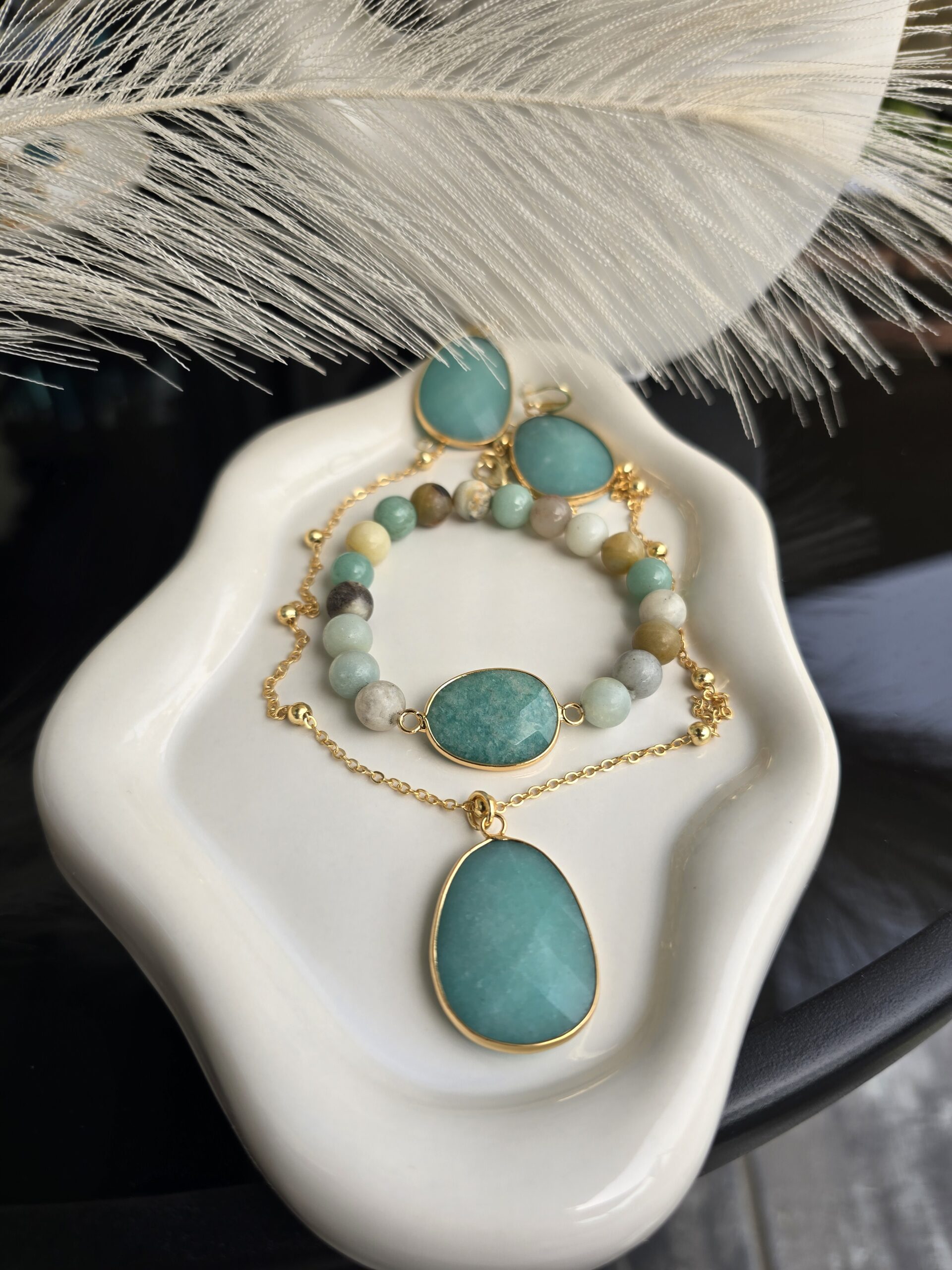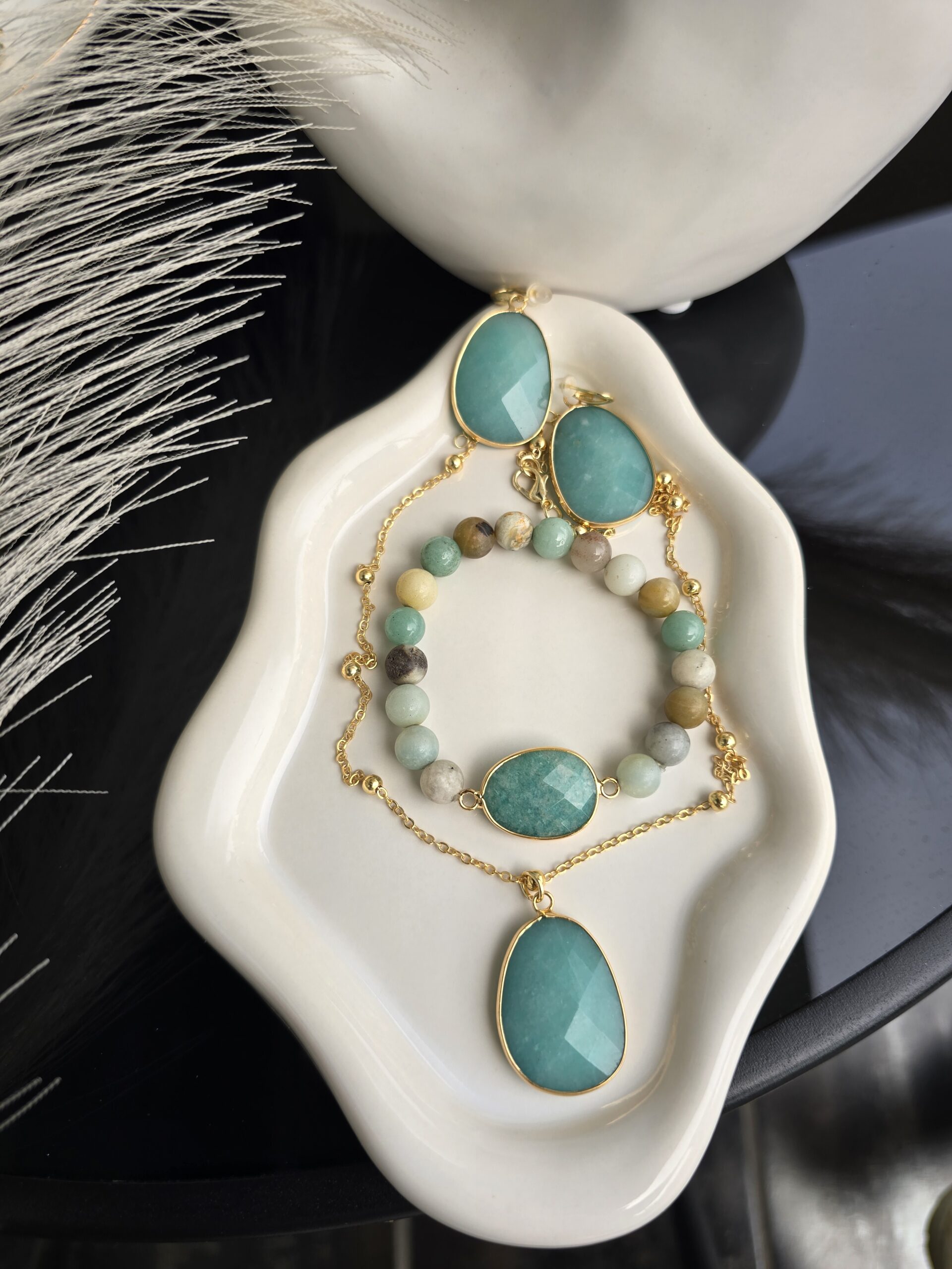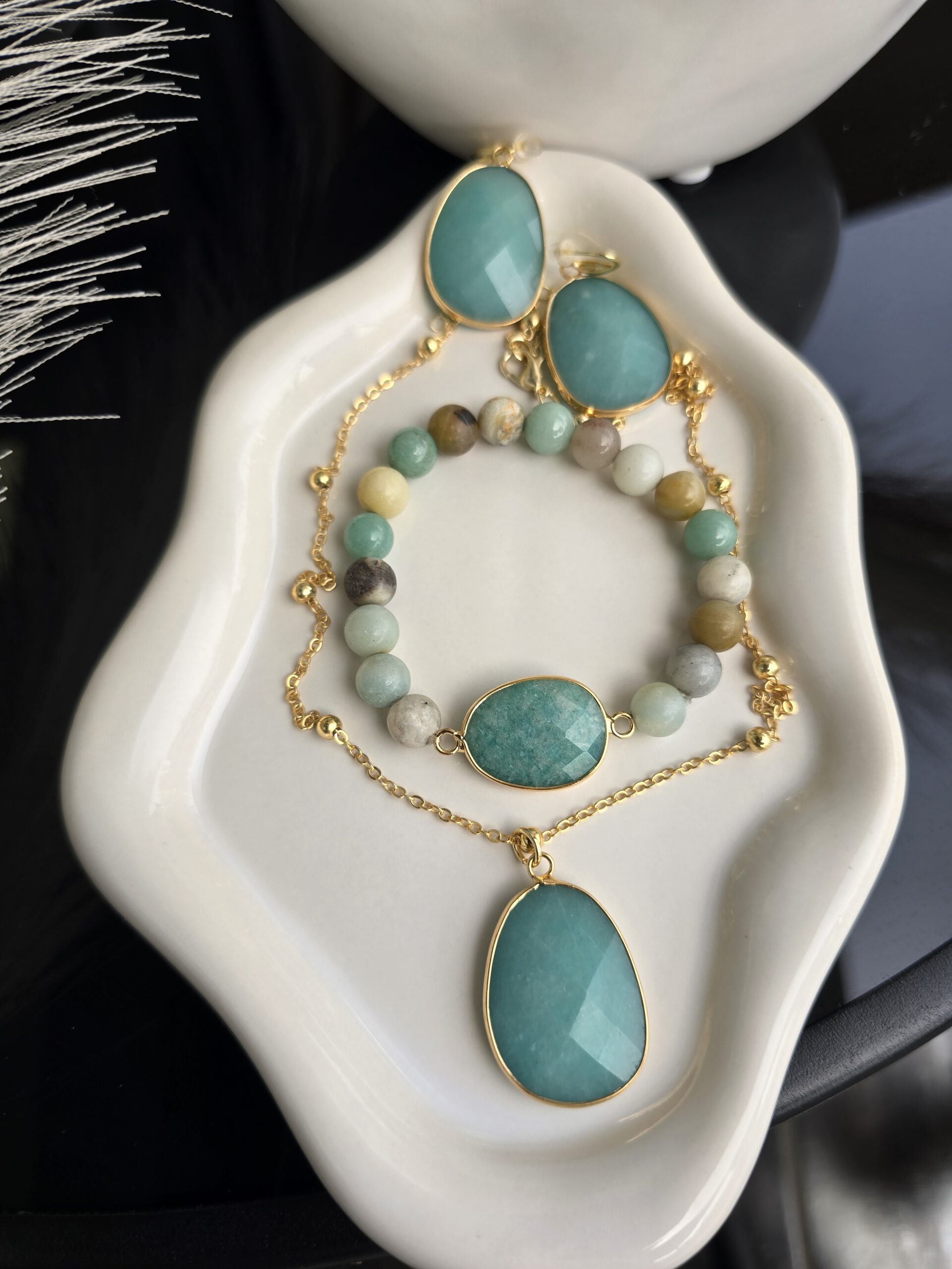Σετ που περιλαμβάνει κολιε,βραχιόλι, κ σκουλαρίκια . Υπόαλλεργικα